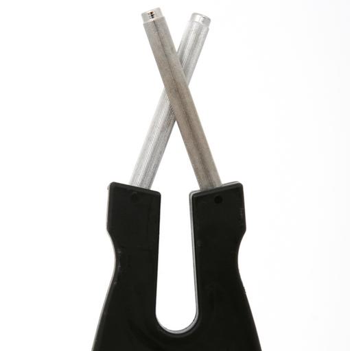 Keywords: accessory aluminum appliance blade breakfast chef chrome closeup close-up cook cookery cooking culinary cut domestic equipment food gadget handheld handle home household implement isolated isolation item kitchen kitchenware knife knives macro metal object over point sharp sharpen sharpener shiny silver slice stainless steel tool utensil utility white