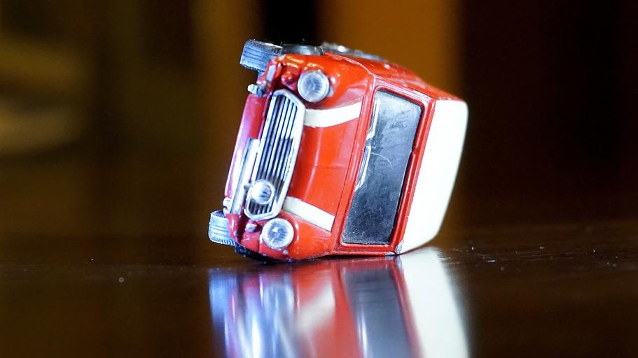Keywords: accident mini morris red upset miniature toy toy car car automobile auto antique toy vehicle