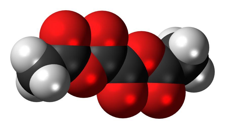Keywords: Acetic-oxalic-anhydride-3D-spacefill.png Space-filling model of the acetic oxalic anhydride molecule the mixed anhydride of acetic acid and oxalic acid Colour code 505050 Carbon C black<br> F0F0F0 Hydrogen H white<br> F51E1E Oxygen O red<br> 2011-06-02 own DS Visualizer Jynto talk Ball-and-stick version cc-zero Carboxylic anhydrides Oxalate esters Acetate esters Images by Jynto Space-filling models |