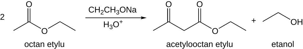 Keywords: Acetylooctan etylu otrzymywanie kondensacja Claisena.svg en Synthesis of ethyl acetoacetate CAS http //www commonchemistry org/ChemicalDetail aspx ref 141-97-9 141-97-9 - polish labels pl Synteza acetylooctanu etylu CAS http //www commonchemistry org/ChemicalDetail aspx ref 141-97-9 141-97-9 - polskie napisy own Winiar 2010-02-01 Claisen condensation Ethyl acetate Ethyl acetoacetate Reactions of ethanol |