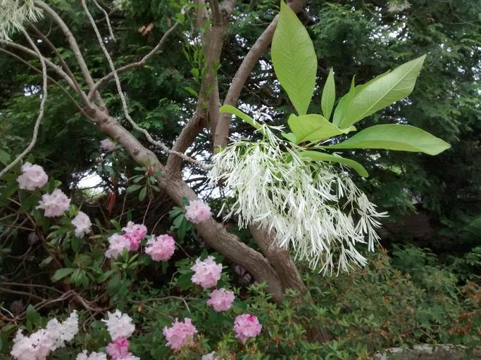 Keywords: Rhodo R7H bloom behind fringe free whiteflower pinkflower d5 r8 rhodo earlyjune 7h chionanthusvirginicus ach07 earlyjun