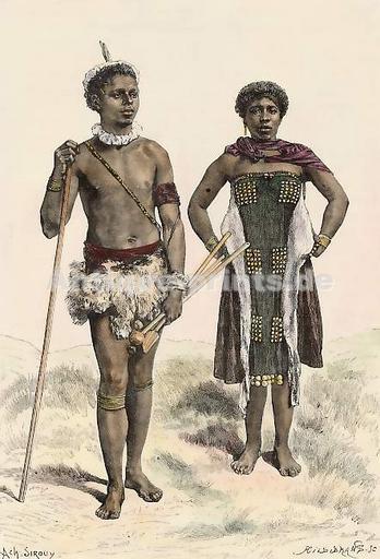 | Keywords: Achille Louis Joseph Sirouy02.jpg en Homme et Femme Cafres South Africa Original wood engraving drawn by A Sirouy engraved by Hildibrand Hand-coloured 19x13cm http //www antique-prints de/shop/catalog php cat KAT53 lang ENG product P008647 Achille-Louis-Joseph Sirouy 1834-1904 1888 Achille Sirouy Bantu men Bantu women Men's fur clothing Fur fashion in 1888 Henri Theophile Hildibrand PD-old-100 | ||||