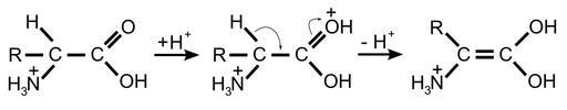 Keywords: Acidic Razemisation 01.svg Racemisation of amino acids under acidic conditions Racemisierung einer Aminosäure unter sauren Bedingungen own made with Inkscape 2012-09-21 Kuebi Armin Kübelbeck Racemic mixture