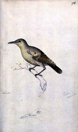 Keywords: Acrocephalus caffer longirostris.jpg Moorea Reed-warbler Acrocephalus caffer longirostris Plate 76 Painted by William Ellis while accompanying Captain James Cook on his third voyage 1776-78 http //extinct-website com/extinct-website/product_info php products_id 560 1776-78 Creator William Ellis naturalist PD-old-100 William Ellis naturalist Acrocephalus caffer |