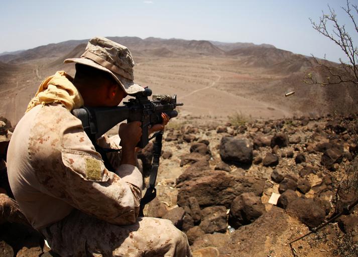 Keywords: Across the African Plain (8003233752).jpg Lance Cpl Stephan DeJesus a native of Clearwater Fla and rifleman with 1st Platoon Bravo Company Battalion Landing Team 1st Battalion 2nd Marine Regiment 24th Marine Expeditionary Unit fires an M-16A4 service rifle during high-angle marksmanship training as part of a three-week training package in Djibouti Sep 15 2012 The training was focused on the application of infantry skills in rugged mountain terrain The 24th MEU is deployed with the Iwo Jima Amphibious Ready Group as a theater reserve and crisis response force throughout U S Central Command and the Navy's 5th Fleet area of responsibility U S Marine Corps photo by Cpl Michael Petersheim https //www flickr com/photos/marine_corps/8003233752/ Across the African Plain 2012-09-15 05 08 https //www flickr com/people/40927340 N03 Marines from Arlington VA United States PD-USGov United States Marine Corps Official Page https //flickr com/photos/40927340 N03/8003233752 2016-09-03 23 13 58 United States Government Work Disc jockeys |