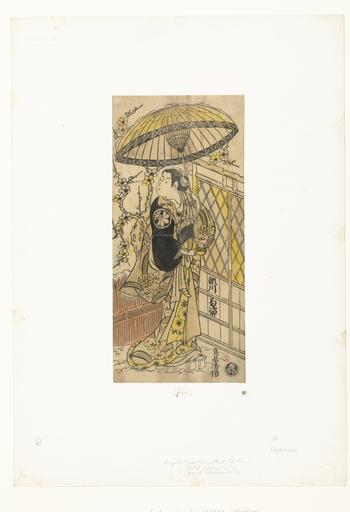 Keywords: Acteur Segawa Kikujiro in de rol van Senju no Mae-Rijksmuseum RP-P-1956-576.jpeg Artwork Creator Torii Kiyomasu II LangSwitch Actor in a female role holding a snow-covered umbrella in his left hand standing in the snow in front of a bamboo gate beside a blossoming plum-tree Acteur in vrouwenrol besneeuwde paraplu in linker hand staand in de sneeuw voor bamboe poort naast bloesemende pruimenboom between 1731 1735 woodcut color copper powder paper cm 31 7 14 6 Institution Rijksmuseum Amsterdam RP-P-1956-576 Torii Kiyomasu II Occupation printmaker Iseya Kimbei; Hosendo publisher Acteur Segawa Kikujiro in de rol van Senju no Mae 1731-1735 object history Hayashi and Chialiva ProvenanceEvent 1956 acquisition LangSwitch el das the el le ~ het Rijksmuseum Amsterdam Amsterdam exhibition history credit line ç ¬å· èŠæ¬¡éƒŽ title bottom right ja Segawa KikujirŠ鳥居清å signature bottom right ja Torii Kiyomasu Inscription publisher's seal bottom right ~ Inscription collector's mark bottom right ~ R MVS collector's mark bottom center ~ 4 number bottom left ~ II / Kiyomasu name bottom right ~ Dit gehele carton intact laten / niets afsnijden en prent hierop laten bottom center nl accession number RP-P-1956-576 place of creation Japan www rijksmuseum nl http //www rijksmuseum nl Home http //www rijksmuseum nl/collectie/RP-P-1956-576 Info PD-US PD-old-100 Data and photography rights All data and all images made available through the API are either in the public domain or are subject to a CC0 license https //www rijksmuseum nl/en/api/terms-and-conditions-of-use cc-zero Uploaded with GWToolset Rijksmuseum RP-P-1956-576 http //www rijksmuseum nl/media/assets/RP-P-1956-576 DEFAULTSORT Torii Kiyomasu 2 1731 Images uploaded by Fæ Japanese 18th-century prints in the Rijksmuseum Amsterdam Images from the Rijksmuseum Torii Kiyomasu II 1731 Segawa KikujirÅ |