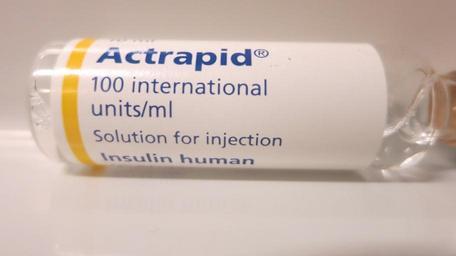 | Keywords: Actrapid vial.jpg en A vial of insulin given the trade name Actrapid 2014-08-15 23 02 04 https //www flickr com/photos/104346167 N06/15260114358 Flickr John Campbell other versions cc-zero Insulin Uploaded with UploadWizard Taken with Canon PowerShot S110 |