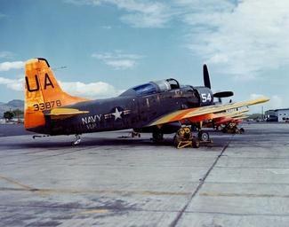 Keywords: AD-5 utility plane NAS Barbers Point.jpg en A U S Navy Douglas AD-5 Skyraider BuNo 133878 of utility squadron VU-1 used for target towing on the ground at Naval Air Station NAS Barbers Point Hawaii USA some time between 1954 and 1962 This aircraft was later passed on to the South Vietnamese Air Force U S Navy National Museum of Naval Aviation photo No 1996 253 2189 http //collections naval aviation museum/emuwebdoncoms/pages/doncoms/Display php irn 16035073 QueryPage 2FQuery php circa 1954 to 1962 U S Navy PD-USGov-Military-Navy AD-5 A-1E Skyraider Naval Air Station Barbers Point Target tugs