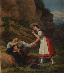 Keywords: Adam August Müller - Sovende mand overvåget af to unge piger.jpg Adam August Müller 1811-1844 da Sovende mand overvåget af to unge piger 1828 oil canvas cm 32 5 28 5 object history credit line accession number http //www arcadja com/auctions/en/m 25C3 25BCller_adam/artist/20637/ Bruun Rasmussen via ARCADJA auction results PD-old-auto-1923 1844 Adam August Müller 1828 paintings Paintings of sleeping people |