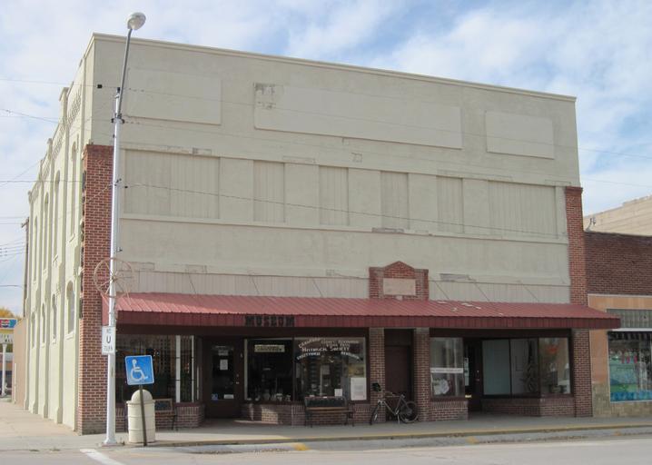 | Keywords: Adams Block (Crawford, NE).JPG Crawford Nebraska The edifice was built in 1887 making it the oldest brick structure and one of the oldest buildings in the city The structure occupies two lots on the northwest corner of Second Elm Streets It was refronted in 1930 hence the problematic stucco The brick on the side of the building is original however The south left side of the building housed a hardware store for about 90 years and the north side housed a general merchandise establishment before becoming a furniture store The upper story was used for offices and gentlemen's entertainment However the upstairs was never updated for electricity or running water and was later used for storing the furniture store's surplus goods The structure was purchased by the Crawford Cultural Center group in the 1970s The north right side of the building was occupied by Crawford RSVP which still uses the space as of 2012 and the south side was used as the senior center before being utilized in 1991 as the Crawford Historical Museum also still active run by the Crawford Historical Society Although the lower story has been kept up fairly well the upstairs has fallen into a state of dilapidation due to neglect; however the windows and access door have been closed up to prevent further damage The additions on the rear of the building constructed probably about 1910 are used for storage Surprisingly the structure does not have a basement The Adams Block is now owned by the city which is housed across the street behind the bank Both organizations currently occupying the building remain active 2011-10-24 own Chevsapher 42 41 9 N 103 24 48 W region US cc-zero Uploaded with UploadWizard Crawford Historical Museum ImageNote 1 2430 1648 430 122 3620 2580 2 This is why stucco doesn't always work ImageNoteEnd 1 ImageNote 2 2118 1530 226 136 3620 2580 2 GEO M ADAMS 1930 ImageNoteEnd 2 ImageNote 3 661 1204 2534 303 3620 2580 2 This ghost sign reads HARDWARE FURNITURE ImageNoteEnd 3 ImageNote 4 258 407 158 403 3620 2580 2 This column also serves as a chimney is the building's early days ImageNoteEnd 4 ImageNote 5 54 1770 109 498 3620 2580 2 This rear addition once featured a large sliding door on the wall visible in this photo The opening has since been made smaller; however the old sliding door and hardware still exist inside the building ImageNoteEnd 5 ImageNote 6 2348 1792 900 557 3620 2580 2 This side of the building houses Crawford RSVP the local branch of a national volunteer program ImageNoteEnd 6 ImageNote 7 2100 1788 244 579 3620 2580 2 This door is the only way to access the second floor which is in bad shape Thankfully the windows have been sealed ImageNoteEnd 7 ImageNote 8 597 1820 1471 570 3620 2580 2 This side of the building houses the Crawford Historical Museum which has on display many items related to the history of the city ImageNoteEnd 8 |