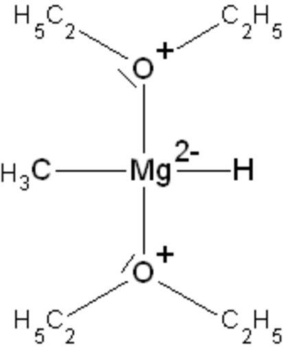 Keywords: Adduitlewis.png Adduit de Lewis formé par réaction entre un organomagnésien mixte et l'éthoxyéthane 2007-02-15 own assumed HcN Organomagnesium compounds Magnesium complexes Diethyl ether complexes Methyl compounds