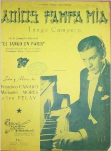 Keywords: Adios Pampa Mia - 1945.jpg en Adios Pampa Mía Partiture Mariano Mores Francisco Canaro Ivo Pelay Buenos Aires 1945 Museo del Tango - Partitura - Buenos Aires - 1945 Mariano Mores 1945 PD-AR-Photo Tango songs Mariano Mores Francisco Canaro 1945 in Argentina Ivo Pelay