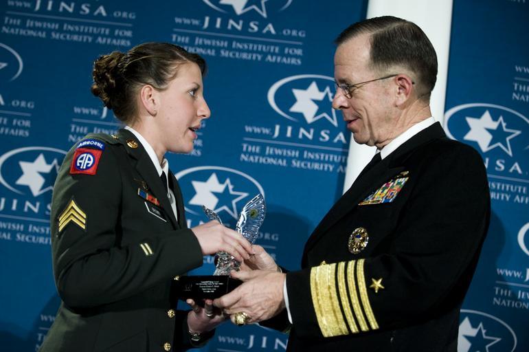 | Keywords: Adm. Mike Mullen presents U.S. Army Sgt. Monica L. Brown with the 2008 Jewish Institute for National Security Affairs Grateful Nation Award 01.JPG en Chairman of the Joint Chiefs Navy Adm Mike Mullen presents U S Army Sgt Monica L Brown with the 2008 Jewish Institute for National Security Affairs Grateful Nation Award during a ceremony in Crystal City Va Dec 8 2008 The award is presented to six individuals that have distinguished themselves through superior conduct in the war on terror http //dodimagery afis osd mil/imagery html guid f3d84825465e93d4bfe574125640d0c17c2b93c0 defenseimagery mil 081208-N-0696M-356 DoD photo by Mass Communication Specialist 1st Class Chad J McNeeley U S Navy/Released 2008-12-8 personality rights PD-USGov-Military-Navy 2008 in Virginia 2008 photographs 8 December Crystal City Arlington Virginia December 2008 in the United States Handshakes involving the military Michael G Mullen in 2008 Monica Lin Brown People wearing military decorations of Germany Bundeswehr Military people on duty |