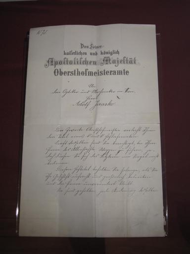 Keywords: Adolf Jirasko 2891.JPG Verleihung des Titels k u k Hoflieferant an den Optiker Adolf Jirasko 2 März 1898 Imperial Warrant issued to the optician Adolf Jirasko as Purveyor to the Imperial and Royal Court 2 March 1898 Image taken at an exhibition at the Wiener Neustadt civic archive own 2011-04 Gryffindor Adolf Jirasko 2891 cropped jpg Adolf Jirasko Cc-zero |