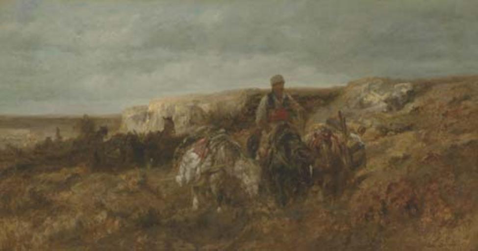 Keywords: Adolf Schreyer - The Pass Over the Hills.jpg Oil canvas cm 76 2 142 2 Private collection christies online 4951359 1870 98 New York 5 - 6 September 2007 object history Willis F McCook <br/>Mrs A Charles Perego Pittsburgh <br/>Anonymous sale Christie's New York 1 November 1999 lot 43 <br/>Acquired at the above sale by the last owner credit line signed 'Ad Schreyer' lower right exhibition history Pittsburgh The Frick Art Museum Collecting in the Gilded Age Art Patronage in Pittsburgh 1890-1910 April-June 1997 cat no 121 accession number source PD-old-100 Adolf Schreyer