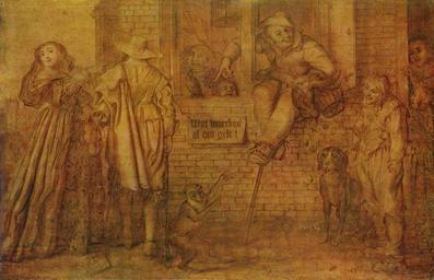 | Keywords: Adriaen Pietersz. van de Venne 001.jpg Artwork Creator Adriaen Pietersz van de Venne 1625 color oak panel cm 34 2 53 Institution Budapest Museum of Fine Arts accession number object history credit line de Haarlemer Malschule Genre works The Yorck Project 10 000 Meisterwerke der Malerei DVD-ROM 2002 ISBN 3936122202 Distributed by DIRECTMEDIA Publishing GmbH http //mail wikipedia org/pipermail/wikide-l/2005-April/012195 html <gallery>File Adriaen Pietersz van de Venne - What Won't People Do for Money - WGA24556 jpg</gallery> PD-old-100 PD-Art-YorckProject Paintings by Adriaen van de Venne Baroque genre paintings 1625 paintings Dutch paintings in the Museum of Fine Arts Budapest People with money in art People with dogs in art People with monkeys in art People at windows in art Pointing in art 1620s paintings in Hungary People with baskets in art |