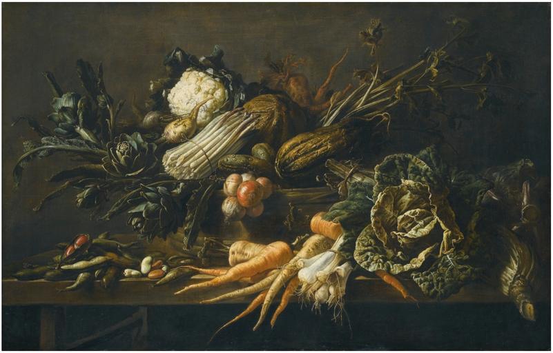 Keywords: Adriaen van Utrecht - Still life of artichoke, asparagus, green cabbage, onions, beans, carrots and other vegetables, all upon a wooden bench.jpg Still life of artichoke asparagus green cabbage onions beans carrots and other vegetables all upon a wooden bench 1641 oil on canvas size cm 75 9 119 4 object history signed and dated lower left on the bench Adriaen van utrecht fe Ano 1641 http //www sothebys com/en/auctions/ecatalogue/2015/old-master-british-paintings-l15030/lot 348 html Sold at Sotheby's on 29 April 2015 London PD-old-100 Still life paintings by Adriaen van Utrecht Still life paintings of fish 17th-century oil on canvas paintings Carrots in art Artichokes in art |