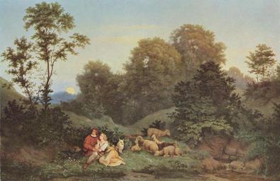 | Keywords: Adrian Ludwig Richter 011.jpg Artwork de Frühlingsabend oil canvas cm 72 110 de Düsseldorf Institution Museum Kunstpalast Genre works de Landschaftsmalerei The Yorck Project 10 000 Meisterwerke der Malerei DVD-ROM 2002 ISBN 3936122202 Distributed by DIRECTMEDIA Publishing GmbH 1844 creator Ludwig Richter http //mail wikipedia org/pipermail/wikide-l/2005-April/012195 html Other versions PD-old-100 PD-Art-YorckProject Ludwig Richter Romantic landscape paintings 1844 paintings Paintings of sheep Romantic paintings of couples Pastoral Paintings in the museum kunst palast Paintings of people in nature 1840s paintings in Germany Paintings of spring People with sheep in art 1840s landscape paintings 19th-century oil on canvas paintings in Germany |