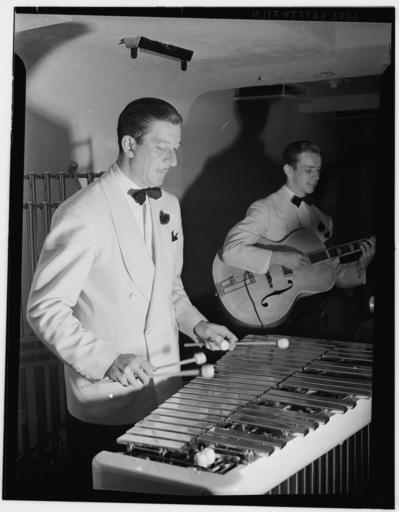 Keywords: Adrian Rollini and Allen Haulon, between 1938 and 1948 (William P. Gottlieb 14931).jpg en Adrian Rollini left and Allen Haulon between 1938 and 1948 http //lcweb2 loc gov/diglib/ihas/loc natlib gottlieb 14931/enlarge html page 1 section ver01 size 1024 from Creator William P Gottlieb PD-Gottlieb Photographs by William P Gottlieb Black and white photographs of the United States in the 1940s Jazz musicians from the United States Black and white photographic portraits of men of the United States Men facing right and looking right Black and white photographic portraits of men People with bow ties Adrian Rollini |
