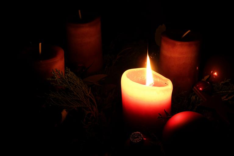 Keywords: advent advent wreath christmas candle flame meditative red yellow candle flame candlelight light burn holly arrangement christmas bauble wax candle deco romantic contemplative festive decorations december
