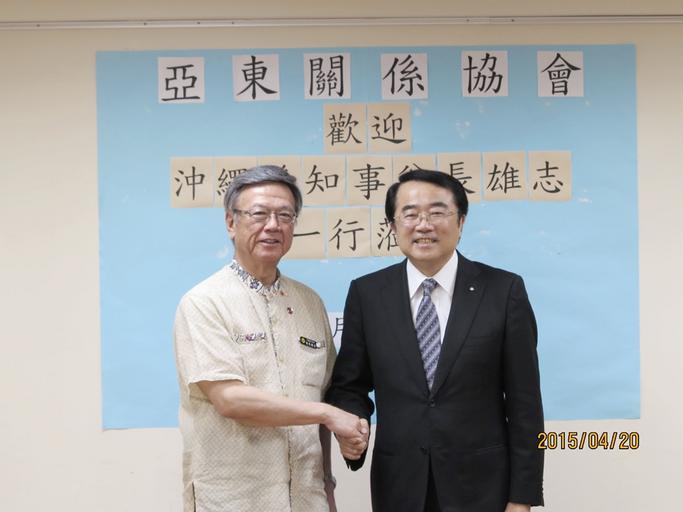 Keywords: AEAR Li Jiajin and Takeshi Onaga 20150420.jpg zh-tw 亞 係協 長 嘉 (右)接見日 沖繩縣知事翁長雄志(左) 2015-04-20 11 42 04 https //www flickr com/photos/101840916 N05/16596597664 亞 係協 other versions Custom license marker 2016 01 23 Association of East Asian Relations Takeshi Onaga |