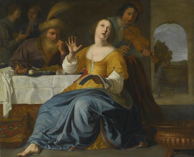 Keywords: Aelbert van Der Schoor Esther and Mordecai.jpg Esther and Mordecai signed and dated on the chalice centre left AV Schoor 1643 AV in ligature oil on canvas; 141 7 by 173 8 cm http //www sothebys com Sotheby's Sale N08952 New York 2013-01-31 “2013-02-01 1643 Creator Aelbert Jansz van der Schoor PD-art-100 Images from Sotheby's Aelbert Jansz van der Schoor Esther and Mordecai 1643 paintings Violinists in art |