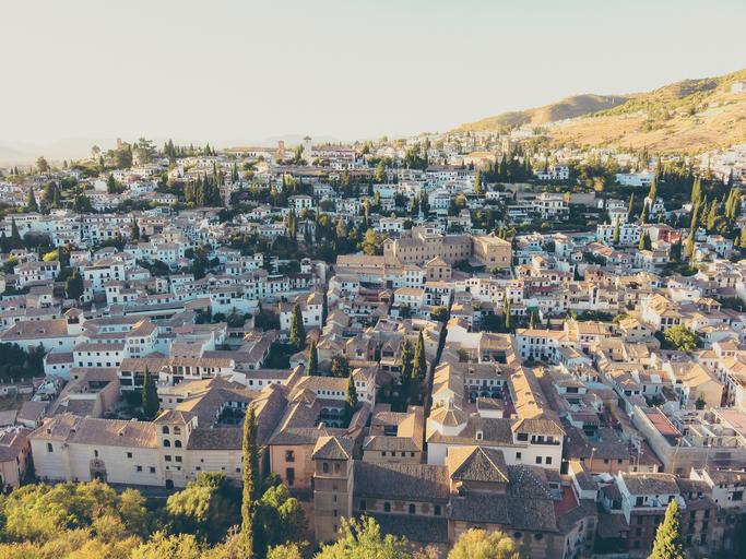 Keywords: aerial view buildings houses apartments city town village rooftops sunshine hills architecture