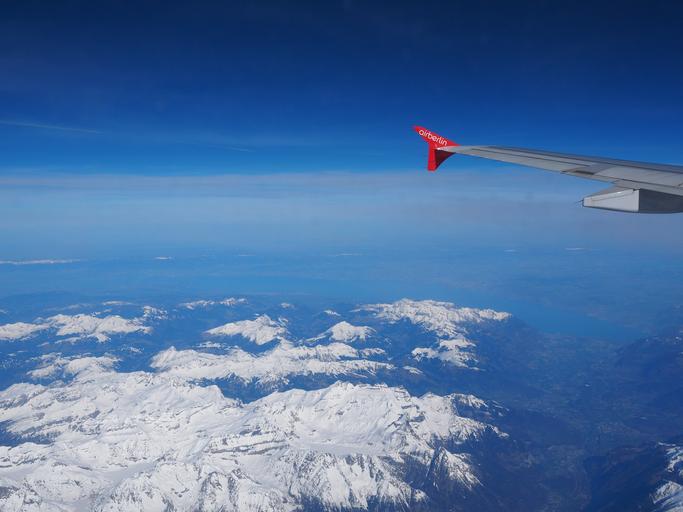 Keywords: aerial view luftbildaufnahme alpine mountains berger aircraft wing aircraft wing fly holiday travel hydrofoil winglet