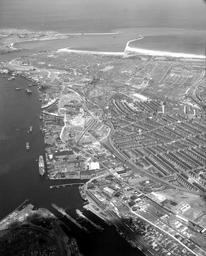 Keywords: aerial photograph aerialphotograph south tyneside southtyneside south shields southshields north sea northsea beaches river tyne rivertyne shipbuilding ship repair shiprepair tyne piers tynepiers john readhead & sons ltd johnreadheadsonsltd dry docks drydocks blackandwhite monochrome aerial outdoor water ocean wave landscape shore coast black and white Aerial view of South Shields, July 1950 (TWAM ref. DT.TUR/2/5148B). Tyne & Wear Archives is proud to present a series of aerial photographs of South Tyneside. These images were captured by the Newcastle-based photographic firm Turners Ltd. Many of the images reflect the district's rich industrial heritage, showing businesses and places that no longer exist. We would be delighted if you could help us to tag these by adding the names of streets and buildings that you recognise. Old photographs can often stimulate distant memories and we would also love to hear any reminiscences that these images inspire (Copyright) We're happy for you to share these digital images within the spirit of The Commons. Please cite 'Tyne & Wear Archives & Museums' when reusing. Certain restrictions on high quality reproductions and commercial use of the original physical version apply though; if you're unsure please email archives@twmuseums.org.uk Aerial view of South Shields, July 1950 (TWAM ref. DT.TUR/2/5148B). Tyne & Wear Archives is proud to present a series of aerial photographs of South Tyneside. These images were captured by the Newcastle-based photographic firm Turners Ltd. Many of the images reflect the district's rich industrial heritage, showing businesses and places that no longer exist. We would be delighted if you could help us to tag these by adding the names of streets and buildings that you recognise. Old photographs can often stimulate distant memories and we would also love to hear any reminiscences that these images inspire (Copyright) We're happy for you to share these digital images within the spirit of The Commons. Please cite 'Tyne & Wear Archives & Museums' when reusing. Certain restrictions on high quality reproductions and commercial use of the original physical version apply though; if you're unsure please email archives@twmuseums.org.uk |