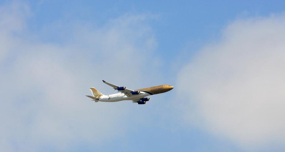 Keywords: aeroplane aircraft plane transportation flying sky blue outdoors photo image