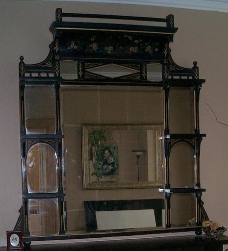 | Keywords: Aesthetic movement furniture overmantle.jpg This is an Aesthetic Movement overmantle from Ireland circa 1890 An overmantle is the mirror that one places over the mantle of a fireplace It is notable for its classic Aesthetic features including Ebonized wood with gilded highlights in the carvings Use of stylized peacock feathers they look like a hieroglyphics of ferns and stylized flowers A colored painting of a nature scene at the top in this case several colored birds within a bough of flowers Copyright notes I took this digital photograph I release it to the public domain The premise is to help people understand what aesthetic movement furniture is own 2007-03-31 Undisputedvoiceofreason talk Uploads This is an Aesthetic Movement overmantle from Ireland circa 1890 An overmantle is the mirror that one places over the mantle of a fireplace It is notable for its classic Aesthetic features including Ebonized wood with gilded highlights in the carvings Use of stylized peacock feathers they look like a hieroglyphics of ferns and stylized flowers A colored painting of a nature scene at the top in this case several colored birds within a bough of flowers Copyright notes I took this digital photograph I release it to the public domain The premise is to help people understand what aesthetic movement furniture is Undisputedvoiceofreason en Original upload log en wikipedia ftcg page en wikipedia Aesthetic_movement_furniture_overmantle jpg wikitable - 14 46 31 March 2007 739 × 813 246 562 bytes Undisputedvoiceofreason w en <nowiki>I took this digital photograph I am the copyright holder I release it to the public domain The premise is to help people understand what aesthetic movement furniture is </nowiki> Overmantels Aesthetic Movement furniture |