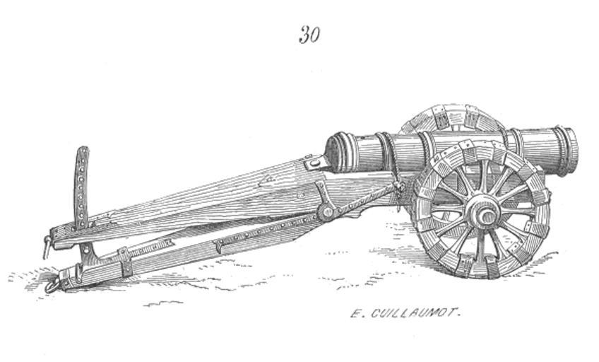 | Keywords: Affut.sur.roues.2.png On chercha donc à rendre cette manœuvre plus facile Au lieu de faire mouvoir toute la membrure supérieure sur un axe placé sous la gueule de la pièce ce fut la partie inférieure de l'affût qu'on rendit mobile et au lieu de placer le boulon en tête on le plaça au droit de la culasse 30 l'effort pour soulever la pièce était ainsi de beaucoup diminué parce que le poids de celle-ci se trouvait toujours reporté sur l'essieu et que plus on soulevait la queue de l'affût moins le poids du canon agissait sur la membrure Viollet-le-Duc Ranged weapon Viollet-le-Duc Medieval gunnery and artillery |