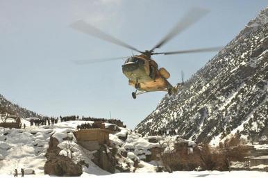 Keywords: Afghan Air Force executes combat resupply in Kunar Valley DVIDS376162.jpg en An Afghan Air Force Mi-17 transport helicopter descends for a landing during a combat resupply mission in Barge Matal in the northern Kunar Valley March 10 The AAF worked in cooperation with the Ministry of the Interior and coalition forces to complete the mission using ten aircraft to deliver over 9 000 kilograms of weapons ammunition and food to Afghan National Police stationed in the remote post that is seen as vital by Afghan officials due to its proximity to Pakistan and history of insurgent activity Following the supply drop-off forces loaded over 80 ANP bound for their respective homes following a three to six month deployment to the region 2011-03-10 Vladimir Potapenko https //www dvidshub net/image/376162 110310-N-+++++-111 2011-03-11 13 50 BARGE MATAL AF PD-USGov-Military-Navy Mil Mi-17 Afghan Air Force Images from DoD uploaded by Fæ |