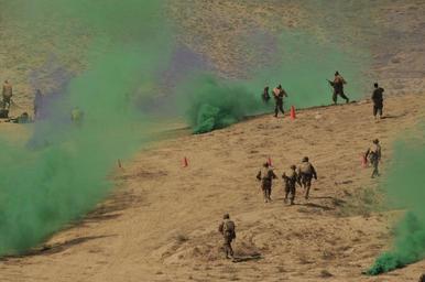 Keywords: Afghan National Army soldiers advance during a simulated strike on enemy positions.jpg 100902-N-1159B-050 Darulaman Afghanistan September 2 2010 “ With colored smoke simulating the fog of war Afghan National Army soldiers advance during a simulated strike on enemy positions at the Infantry Branch School in Darulaman The school teaches Afghan soldiers infantry tactics and trains them on weaponry including mortars crew-served weapons and recoilless guns U S Navy photograph by Chief Mass Communication Specialist Brian Brannon/Released http //www flickr com/photos/ntm-a_cstc-a/4952039084/ 100902-N-1159B-050 2010-09-02 09 40 http //www flickr com/people/44825691 N08 NATO Training Mission-Afghanistan Chief Mass Communication Specialist Brian Brannon USN Attribution-ShareAlike License IPTC Caption-Abstract U S Navy photo PD-USGov-Military-Navy cc-by-sa-2 0 NATO Training Mission-Afghanistan https //flickr com/photos/44825691 N08/4952039084 2015-12-11 22 31 02 cc-by-sa-2 0 Files from NATO Training Mission-Afghanistan Flickr stream NATO Training Mission - Afghanistan Afghan National Army 2010 in Afghanistan