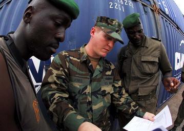 Keywords: Africa Partnership Station Returns to Gabon DVIDS79111.jpg en Chief John Kines chief gunner's mate checks aboard new Africa Partnership Station APS students from the Gabonese military at Port Gentile Gabon Gabonese students arrived onboard the amphibious dock landing ship USS Fort McHenry LSD 43 for various APS training topics such as pier and waterside sentry specialized medical training and maritime law Part of the U S Navy's Global Fleet Station APS provides a platform with the capacity and persistent presence to support sustained focused training and collaboration on a regional scale to maritime partners in West and Central Africa Commander Task Force 365 and training teams from various U S and European military commands as well as governmental and non-governmental organizations are embarked on board Fort McHenry to enhance cooperative partnerships U S Navy photo/Petty Officer 2nd Class R J Stratchko 2008-03-03 Petty Officer 2nd Class RJ Stratchko https //www dvidshub net/image/79111 080303-N-+++++-011 2008-03-03 16 38 PORT GENTILE GA PD-USGov-Military-Navy USS Fort McHenry LSD-43 Images from DoD uploaded by Fæ |