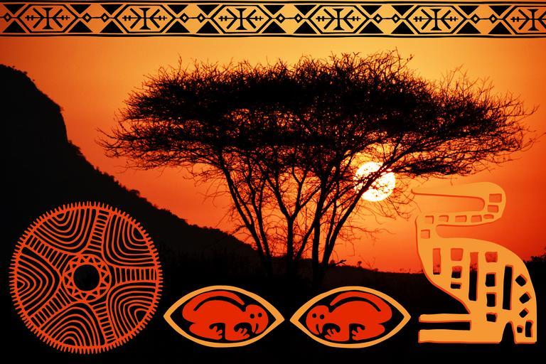 Keywords: africa safari summer sun nature sunset graphic ethno-graphic ethnological symbols landscape travel expedition exotic hipster desert pattern border root sign ethnic group
