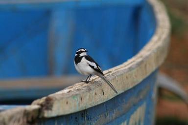 Keywords: african pied wagtail bird small bird african bird africa fauna wildlife uganda lake mburo boat perched