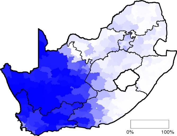 Keywords: Afrikaans speakers proportion ZA.svg South Africa Afrikaans speakers proportion map svg Speakers of Afrikaans as a home language as a proportion of total population in South Africa Afrikaanse huistaalsprekers proporsioneel tot die hele Suid-Afrikaanse bevolking self-made based on Census 2001 data 2007-08-17 Adrian Frith Linguistic maps of the Afrikaans language Superseded linguistic maps of South Africa |