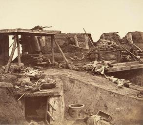 | Keywords: After the Capture of the Taku Forts 1860.jpg en <br /> The capture of the Taku forts by Anglo-French troops led by Lord Elgin and Baron Gros was the decisive battle in a war that was but one episode in the long struggle by the Western nations to open China to trade The Anglo-French soldiers stormed the forts on August 21 1860 after an explosion destroyed the powder magazine of the Great North Fort; the Chinese defenders fought to the last man <br /> Beato's photographs made inside the fort show the carnage with a brutal directness Less than two months later he would take probably the only photographs ever made of the interior of the summer palace north of Peking before it was destroyed by fire by order of Lord Elgin zh-hant <br /> 英法聯軍奪佔大沽砲台,由英法公使額爾金 葛羅引領下,是戰事中西方 家跟中 長 鬥爭,以此打開中 商大 鍵決 的 戰 英法士兵 1860年8 21日攻 砲台, 場爆炸之後炸 了北砲台的火藥庫,中 守兵戰到 後 人 <br /> 比特的照片從砲台內拍 ,展示了直接殘酷的屠殺 不到兩 的時間,他將可能拍到 史以來北京 明 的唯 遺照,就是 它 於被額爾金下令燒 的 場大火之前 http //www metmuseum org/Collections/search-the-collections/190036361 Creator Felice Beato 1860 PD-old-100 Battle of Taku Forts 1860 Photographs of China by Felice Beato Soldiers killed in action Historical images of Tianjin |