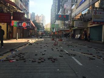 Keywords: After Mong Kok civil unrest Road 2.jpg zh 旺角騷亂後,遺下大量磚頭的路 http //www voachinese com/media/photogallery/hongkong-protests-20160209/3182900 html 美 之音記 譚嘉琪 2016-02-09 PD-USGov-VOA 22 18 59 78 N 114 10 16 72 E alt 18 432678_source exif_heading 81 08042 2016 Mong Kok civil unrest |
