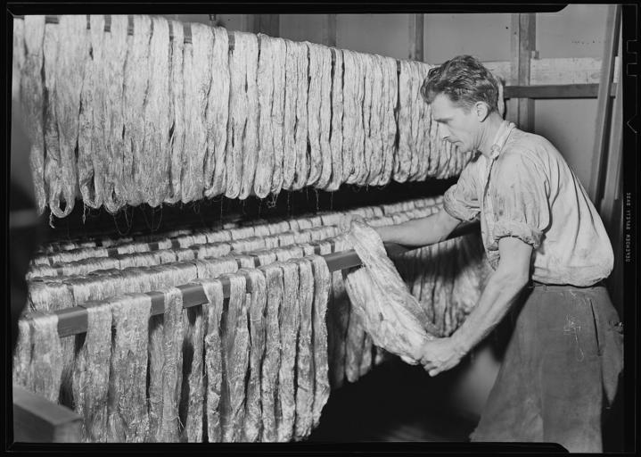 | Keywords: nara:arcid=518577 u.s. national archives usnationalarchives lewis hine lewishine 1937 paterson new jersey newjersey the great depression thegreatdepression blackandwhite monochrome photo border black and white Original Caption: Paterson, New Jersey - Textiles. After the skeins are taken from the whizzer, they are hung on racks to dry, March 1937 U.S. National Archives’ Local Identifier: 69-RP-338 Photographer: Hine, Lewis Subjects: The New Deal Tennessee Valley Authority Works Progress Administration Work Portraits The Great Depression Persistent URL: research.archives.gov/description/518577 Repository: Still Picture Records Section, Special Media Archives Services Division (NWCS-S), National Archives at College Park, 8601 Adelphi Road, College Park, MD, 20740-6001. For information about ordering reproductions of photographs held by the Still Picture Unit, visit: www.archives.gov/research/order/still-pictures.html Reproductions may be ordered via an independent vendor. NARA maintains a list of vendors at www.archives.gov/research/order/vendors-photos-maps-dc.html Access Restrictions: Unrestricted Use Restrictions: Unrestricted Original Caption: Paterson, New Jersey - Textiles. After the skeins are taken from the whizzer, they are hung on racks to dry, March 1937 U.S. National Archives’ Local Identifier: 69-RP-338 Photographer: Hine, Lewis Subjects: The New Deal Tennessee Valley Authority Works Progress Administration Work Portraits The Great Depression Persistent URL: research.archives.gov/description/518577 Repository: Still Picture Records Section, Special Media Archives Services Division (NWCS-S), National Archives at College Park, 8601 Adelphi Road, College Park, MD, 20740-6001. For information about ordering reproductions of photographs held by the Still Picture Unit, visit: www.archives.gov/research/order/still-pictures.html Reproductions may be ordered via an independent vendor. NARA maintains a list of vendors at www.archives.gov/research/order/vendors-photos-maps-dc.html Access Restrictions: Unrestricted Use Restrictions: Unrestricted |