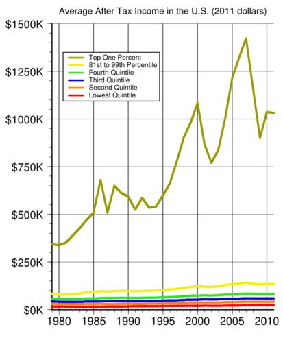 Keywords: After tax household income in the US.svg en After tax household income in the United States for each quintile from 1979 to 2011 The percentage increase inflation adjusted in the lowest quintile was 48 in the second quintile 37 in the third quintile 35 in the fourth quintile 45 for the 81st to 99th percentile 64 and for the top one percent 200 Data source https //www cbo gov/publication/49440 The Distribution of Household Income and Federal Taxes 2011 2016-03-15 own Delphi234 other versions Generated with Wikimedia SVG Chart SVG Chart/box current annually cc-zero Politics of the United States Income distribution in the United States Inequality ethics |
