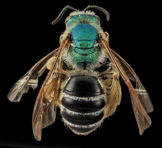 Keywords: bug bugs bee bees pollinator pollinators animal animals animalia arthropod arthropods arthropoda insect insects insecta hymenoptera aculeata anthophila apoidea halictidae halictid halictid bee halictidbee sweat bee sweatbee sweat bees sweatbees halictinae halictini agapostemon taxonomy:binomial=agapostemon coloradinus taxonomy:binomial=agapostemoncoloradinus metallic blue blue-green bluegreen agapostemon coloradinus agapostemoncoloradinus badlands national park badlandsnationalpark south dakota southdakota biml droege usgs zerene stacker zerenestacker stackshot usgsbiml black background surreal indoor A large bright green with blue overtones Agapostemon from Badlands National Park. One of several species present there and very similar to A. virescens and a bit tricky to tell apart. Photo by Wayne Boo with help from Ben Smith on upping the Photoshopping techniques. Canon Mark II 5D, Zerene Stacker, 65mm Canon MP-E 1-5X macro lens, Twin Macro Flash, F5.0, ISO 100, Shutter Speed 200, link to a .pdf of our set up is located in our profile. A large bright green with blue overtones Agapostemon from Badlands National Park. One of several species present there and very similar to A. virescens and a bit tricky to tell apart. Photo by Wayne Boo with help from Ben Smith on upping the Photoshopping techniques. Canon Mark II 5D, Zerene Stacker, 65mm Canon MP-E 1-5X macro lens, Twin Macro Flash, F5.0, ISO 100, Shutter Speed 200, link to a .pdf of our set up is located in our profile. |