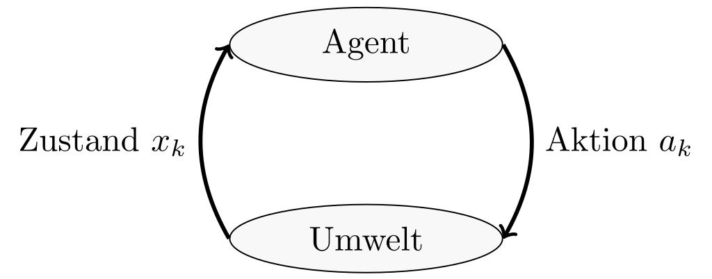Keywords: Agent-environment-diagram-mdp.svg de Agent-Umwelt-Diagram für ein MDP 2016-07-11 own MartinThoma other versions cc-zero Images by Martin Thoma/Computer Science Markov chains