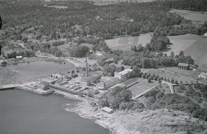 Keywords: flyfotografering widerøe larvik vestfold norway nor treforedling industri fabrikk fjellanger widerøe fjellangerwiderøe flyfoto skråfoto vestfoldmuseene outdoor blackandwhite black and white WF.HL.57959 WF.HL.57959