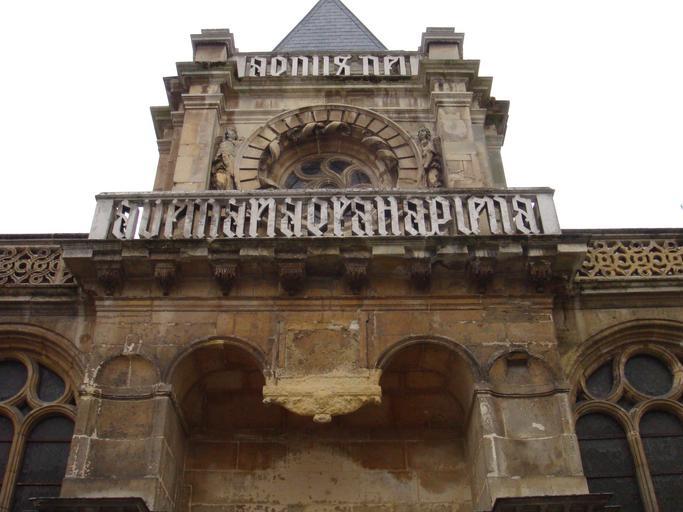 | Keywords: Agnus dei ND.JPG fr Cathédrale Notre-Dame du Havre Ballustrades au-dessus du portail nord portail gauche en regardant dans la direction du choeur qui forment les mots Agnus Dei AVE MARIA GRATIA PLENA Own Jérémy76 05/06/2009 ImageNote 1 1081 453 1053 461 3264 2448 2 Rose de style flamboyant formant une roue portée par deux anges bas-relief sur les côtés ImageNoteEnd 1 ImageNote 2 253 1424 2660 991 3264 2448 2 Niches avec un couronnement de style médiéval Sur la plaque au centre il y avait un bas-relief représentant l'Annonciation Les niches étaient décorées de statues de prophètes de l'ancien testament ImageNoteEnd 2 ImageNote 3 404 902 2293 261 3264 2448 2 Balustrade gothique; on lit Ave Maria gratia plena ImageNoteEnd 3 ImageNote 4 1146 245 857 114 3264 2448 2 Balustrade Agnus Dei Par le passé la balustrade écrivait Quis ut Deus et a était remanier plusieurs fois ImageNoteEnd 4 ImageNote 5 1151 8 808 233 3264 2448 2 Le triangle de la toitures était auparavant décoré par un bas-relief en triangle représentant le Père appuyé sur deux chérubins ImageNoteEnd 5 ImageNote 6 743 114 339 787 3264 2448 2 Pilastre d'ordre dorique idem pour l'autre pilastre ImageNoteEnd 6 ImageNote 7 294 1171 2501 184 3264 2448 2 Corniche de style classique ImageNoteEnd 7 ImageNote 8 2823 1081 437 306 3264 2448 2 Balustrade gothique ImageNoteEnd 8 Cathédrale Notre-Dame du Havre |