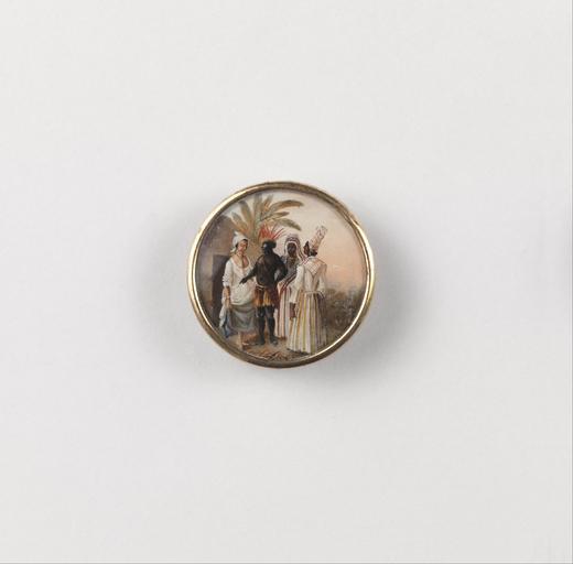 Keywords: Agostino Brunias - West Indian Scene - Google Art Project.jpg ~ 1795 1730 1730 Agostino 6724151 Brunias 1730 - 1730 /collection/cooper-hewitt-national-design-museum/artwork/west-indian-scene-agostino-brunias/6701864/ 101766 Agostino Brunias /artist/agostino-brunias/6847111/ 6847111 /collection/cooper-hewitt-national-design-museum/ Cooper-Hewitt National Design Museum 3644669 http //www cooperhewitt org/ 3/11/2012 5 54 36 PM /collection/cooper-hewitt-national-design-museum/artwork/west-indian-scene-agostino-brunias/6701864/ 1790 ca 1795 Gouache paint on canvas on tin verre fixeé ivory backing glass gilded metal The possible provenance of the buttons may be sketched out as follows given by Toussaint L'Ouverture upon his return to France from /Haiti and Santo Domingo to servant boy c 1802; eventually acquired by boy's heirs in the Sedan; acquired from heirs by Professor Lalongt College of Sedan and sold to Etienne Accary; sold on behalf of Accary by Salle Drouot auction house Paris 1939 to Mrs Noyes; buttons arrive possibly as a loan at Cooper Union Museum around 1942; gift to Museum from the estate of Mrs Noyes in 1949 37 6701864 False 1796 3/25/2012 5 27 42 AM 1949-94-9 http //collection cooperhewitt org/view/objects/asitem/id/101766 Gift of R Keith Kane from the Estate of Mrs Robert B Noyes Button 1790 1800 w37 x h37 x d10 cm ca 1795 False 1 01587301587302 Object west-indian-scene-agostino-brunias West Indian Scene w 37 Millia Davenport The Book of Costume vol II N Y Crown Publ c1948 opp p 702 H x W x D 3 7 x 3 7 x 1cm 1 7/16 x 1 7/16 x 3/8in Washington DC National Collection of Fine Arts Smithsonian Institution Treasures from the Cooper Union Museum 7/13/67-9/23/67 New York NY Cooper-Hewitt Museum More than Meets the Eye 11/15/77-3/15/78New York NY Cooper-Hewitt Design for Life A Centennial Celebration 9/30/97-1/4/98 None Gouache paint on canvas on tin verre fixeé ivory backing glass gilded metal The possible provenance of the buttons may be sketched out as follows given by Toussaint L'Ouverture upon his return to France from /Haiti and Santo Domingo to servant boy c 1802; eventually acquired by boy's heirs in the Sedan; acquired from heirs by Professor Lalongt College of Sedan and sold to Etienne Accary; sold on behalf of Accary by Salle Drouot auction house Paris 1939 to Mrs Noyes; buttons arrive possibly as a loan at Cooper Union Museum around 1942; gift to Museum from the estate of Mrs Noyes in 1949 special url_id 3gFNEepj9ZEJ5Q PD-old-100-1923 1730 Agostino Brunias Miniatures Buttons clothing Google Art Project works by Agostino Brunias Google Art Project works in Cooper-Hewitt Smithsonian Design Museum West India |