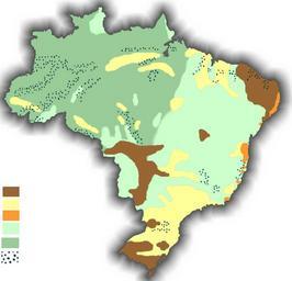 | Keywords: Agricultura no Brasil.png Map of agriculture in Brazil<br>brown- grains; yellow- mixed farming; orange- monoculture; green-clear- pastures; green- forest; stippled- extractivism Own 2009-03-09 André Koehne File Agricultura no Brasil legenda png Agricultural maps of Brazil Sent by André Koehne |