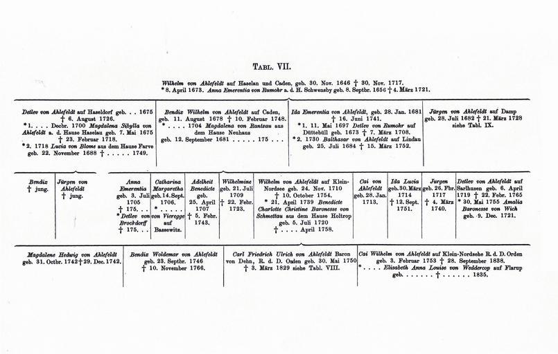 Keywords: Ahlefeldt Stammtafel 09.jpg de Stammtalfel der Adelsfamilie von Ahlefeldt aus dem Jahr 1869 Scan aus dem Buch Die Schleswig-Holsteinische Ritterschaft aus dem Jahr 1869 L von Ahlefeldt und W A von Rumohr 1869 PD-old Family trees of Ahlefeldt family |