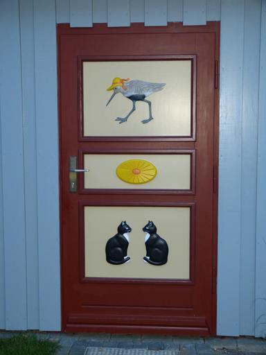 Keywords: ahrenshoop zingst home door input wood relief image cat bird building